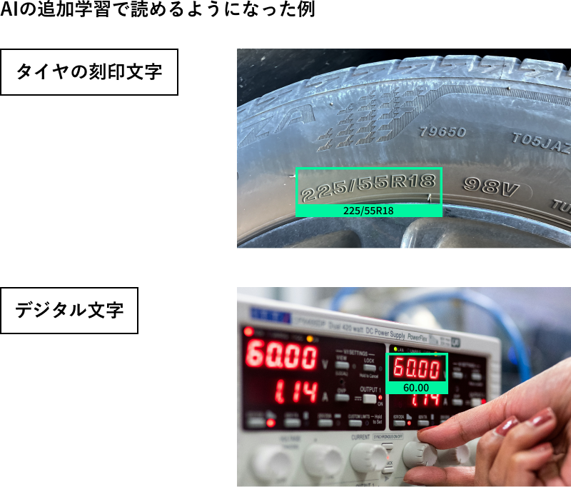 英数字はもちろん、バーコード・二次元コード、そして日本語や手書きの英数字まで読み取れる高精度AI。幅広いフォントに対応し、特殊な文字にはカスタマイズも可能です。